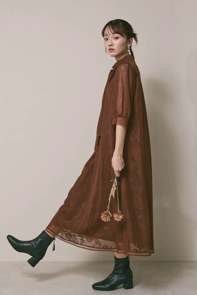 【AIMER】ブラウンのスパンコール刺繍ドレス