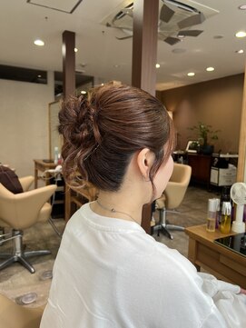 毛先をまとめていくだけでシニヨン風にも。