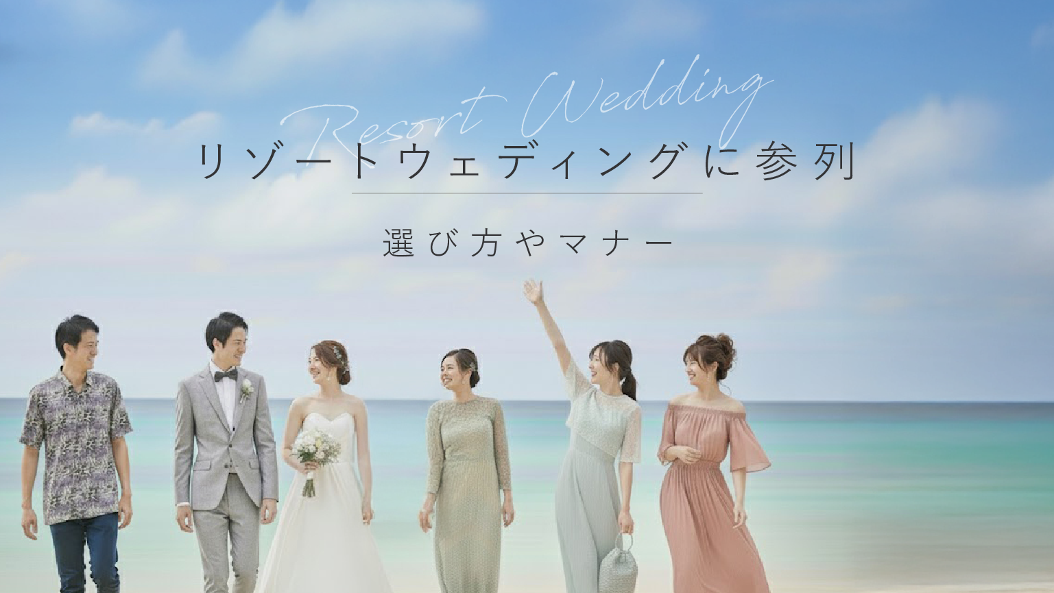 今回は、リゾートウェディングに参列する時の服装、男女別小物の選び方など、下記3点についてご紹介しました。