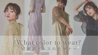 当記事は、結婚式のお呼ばれドレスに関する色のマナーや選ぶポイント、結婚式のお呼ばれドレスの色別おすすめコーデ、結婚式のお呼ばれドレスに関する基本的なマナーもご紹介します。