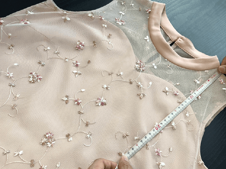 シミがあったり、ニオイがあったりすることがないよう、お手元に届いたドレスを気持ちよく着ていただくために、時間をかけて丁寧に検品作業を行っています。