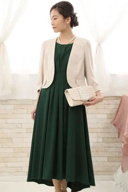 親族としての出席だったので、あまり派手ではなく、でも黒や紺だと他の人とかぶるので、ちょうど良い色合いの緑があって、とても良かったです。