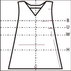 - 胸元に 16cm の横の糸つれ