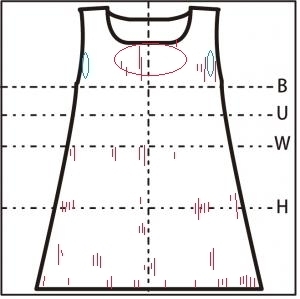 - 胸元に 9.5cm の縦の糸つれ(3㎝~9.5㎝ 4か所)