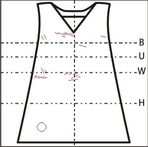 - 胸元に 7.5cm の横の糸つれ(3㎝~7.5㎝ 多数)