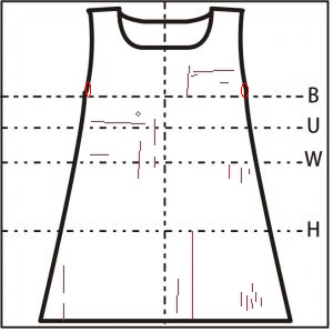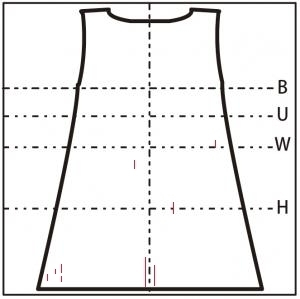 調節ひもで体にぴったりと合わせられるが、胸元部分が少したるみやすい。ひもが長いので二重で背中のループにひもを通すとよい。ひざ下丈。