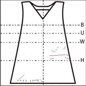 - えり元に 2.5cm の縦の糸つれ(1cm、2.5cm2カ所)