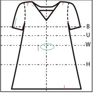 - ウエスト・腰部分に 9cm の縦の糸つれ
