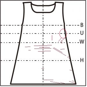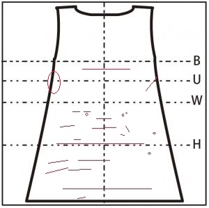 - ウエスト・腰部分に 10cm の横の糸つれ