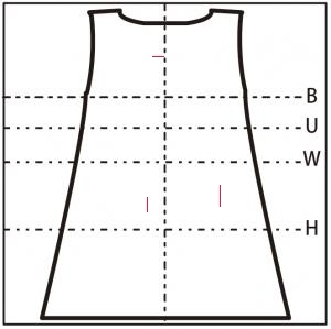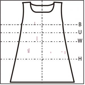 - ウエスト・腰部分に 5cm の縦の糸つれ
