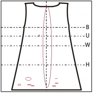バスト、ウェスト、ヒップともにかなり大きい。わきまわりも大きい。ただ、えりぐりはぴったりで、かがんでも安心。足さばきが悪く、座ると体にフィットする。