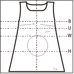 脇まわりがかなりゆるく下着が見える。襟ぐりはぴったりでかがんでも見えない。ウエスト切替部分はやや大きい。ファスナーは切替部分が少し固い。
