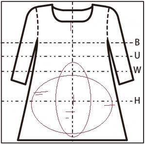 - 胸元に 6cm の縦の糸つれ(襟元中央付近)