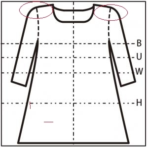 (※1)肩幅は袖と身頃の切替部分を直線で計測。