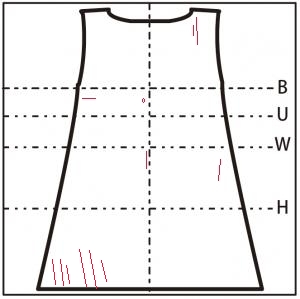 - スカート右側寄りに 21cm の縦の糸つれ(7.5cm、21cm2カ所)