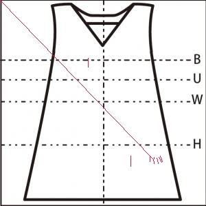 - 胸元に 4cm の縦の糸つれ