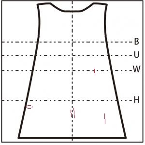 バスト、ウエスト、ヒップともにややゆとりがあって大きいが、わりと体にフィットしているので着られないことはない。わきまわりは大きくあいていて動きやすい。えりもとはせまいので、着る時は髪をセットする前が良い。