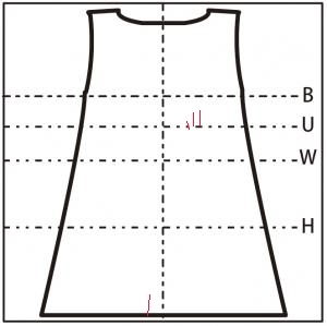 調節ひもで体にぴったりと合わせられるが、胸元部分が少したるみやすい。ひもが長いので二重で背中のループにひもを通すとよい。ひざ下丈。