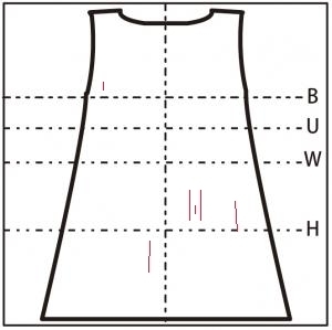 - 胸元に 5cm の横の糸つれ