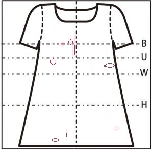 - ウエスト・腰部分に 0.5cm のシミ(胸下左側に赤いしみあり)