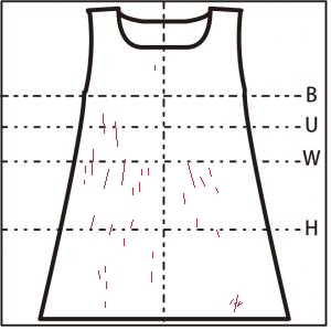 - 胸元に 0.6cm の縦の糸つれ