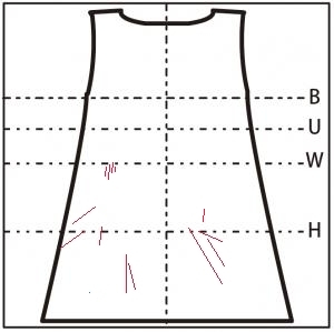 - ウエスト・腰部分に 4cm の縦の糸つれ(2cm~4cm 3ヶ所)