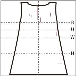 - 胸元に 3cm の縦の糸つれ