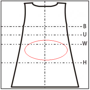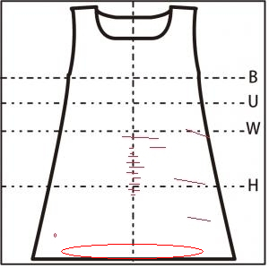 - ウエスト・腰部分に 14cm の横の糸つれ(5cm、,14cmの2ヶ所)