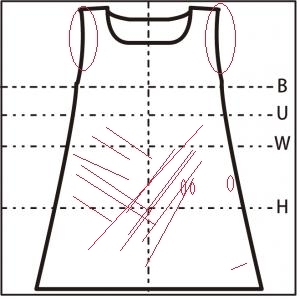 - 全体に 0.1cm の糸の飛び出し(スカート全体に糸の飛び出し、複数あり)