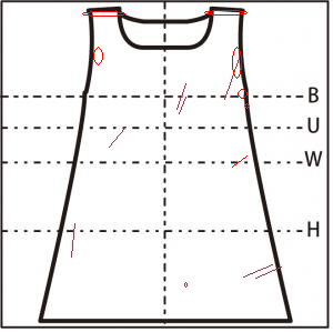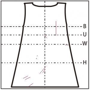 - ウエスト・腰部分に 8cm の縦の糸つれ