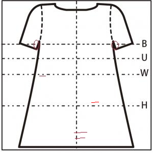 - 胸元に 3.5cm の横の糸つれ