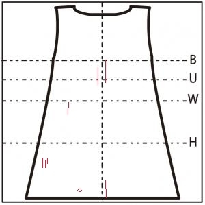 - スカートすそ付近に 16cm の縦の糸つれ