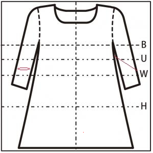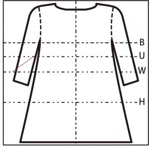 バストウェスト ヒップ 着丈 肩幅(※1) 89 72 (やや細身) 76 102 100 34 ゆき丈 アーム