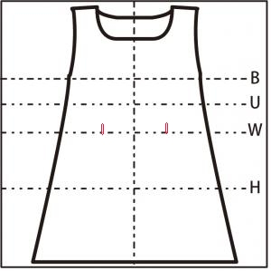 - ウエスト・腰部分に 4cm の生地が薄くなっている箇所あり(ウエストダーツ部分2ヶ所)