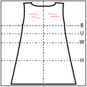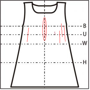 全体的にゆとりがあり、特にバスト部分は大きく感じる。脇周りはちょうど良い。