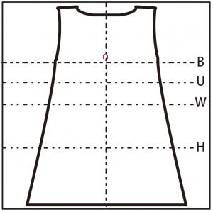 背中のひもで体に合わせられる。首周りや脇周りもちょうど良い。ひざ上丈。動くと袖がきつい。