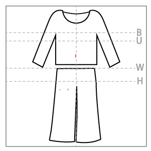 - サイズはやや小さく、丈はひざ下でした。 パンツはゆとりがあり履きやすかったです。 トップスは自分が肩幅がある方なので結構きつかったです。
