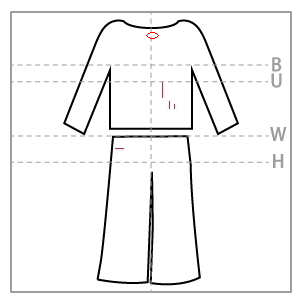 - ウエスト・腰部分に 3.5cm の縦の糸つれ