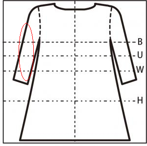 (※1)肩幅は袖と身頃の切替部分を直線で計測。