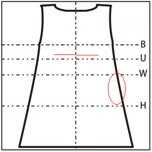 - ウエスト・腰部分に 直径20cm の横の糸つれ
