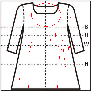 - 全体に 0.1cm の糸の飛び出し(糸つれの部分からの糸の飛び出し多数)