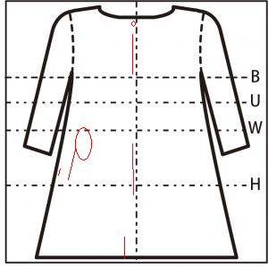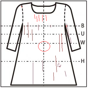 - 胸元に 16cm の縦の糸つれ(右胸からウエストにかけて9.5cm.12.5cm.16cmの糸つれあり。)