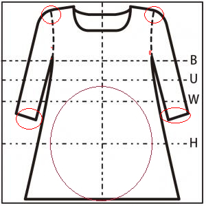 (※1)肩幅は袖と身頃の切替部分を直線で計測。