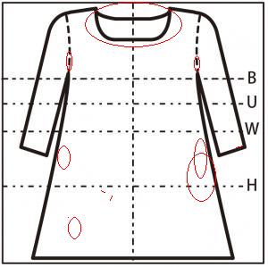 - 裏地に 直径3cmcm の生地が薄くなっている箇所あり(胸元)