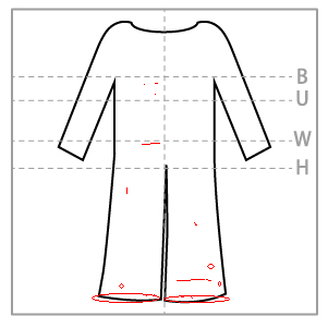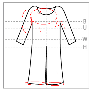- ウエスト・腰部分に 15cm の横の糸つれ