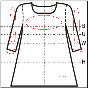 - 袖口に cm の変色(フリルレース部分白色に変色あり)