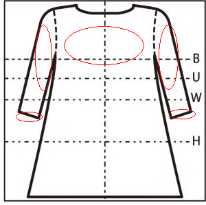 (※1)肩幅は袖と身頃の切替部分を直線で計測。
