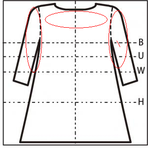(※1)肩幅は袖と身頃の切替部分を直線で計測。