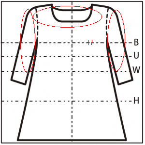(※1)肩幅は袖と身頃の切替部分を直線で計測。