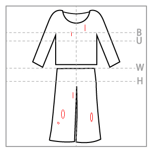 - 胸元に 1.5cm の破れた箇所の補修跡(トップス胸元中央辺り)